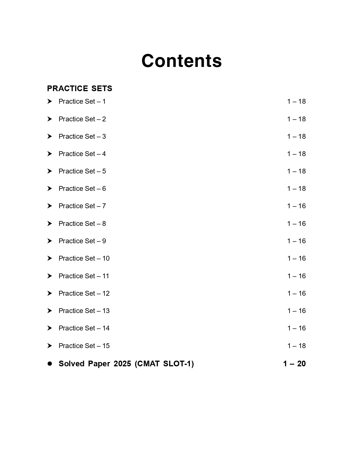 CMAT 2026: 15 Practice Sets is designed to provide extensive exam-level practice for aspirants preparing for the Common Management Admission Test. The book contains 15 full-length practice sets prepared in line with the latest CMAT exam pattern.