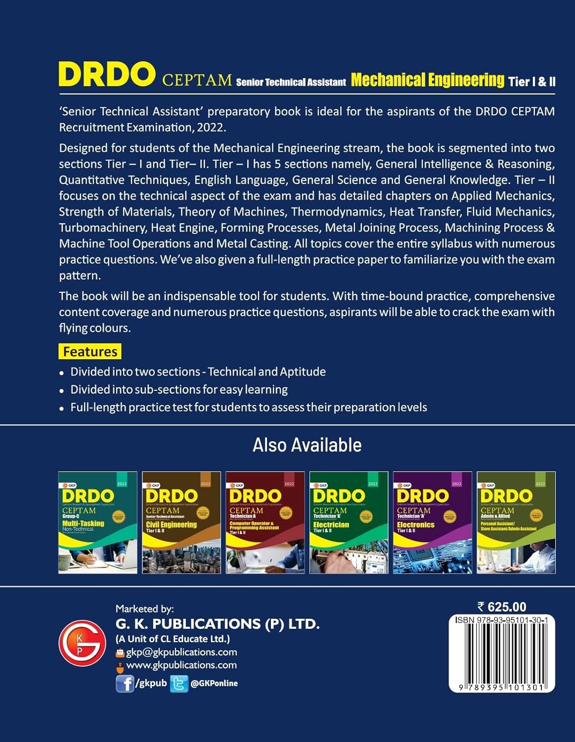 The DRDO CEPTAM: Mechanical Engineering (Tier-1 & 2) - Senior Technical Assistant preparatory book is an ideal and indispensable tool for aspirants of the Defence Research & Development Organisation - Centre for Personnel Talent Management (DRDO CEPTAM) Recruitment Examination. Specifically designed for students in the Mechanical Engineering stream, the book is comprehensively segmented into Tier-I (General Aptitude) and Tier-II (Technical) for structured and focused preparation.