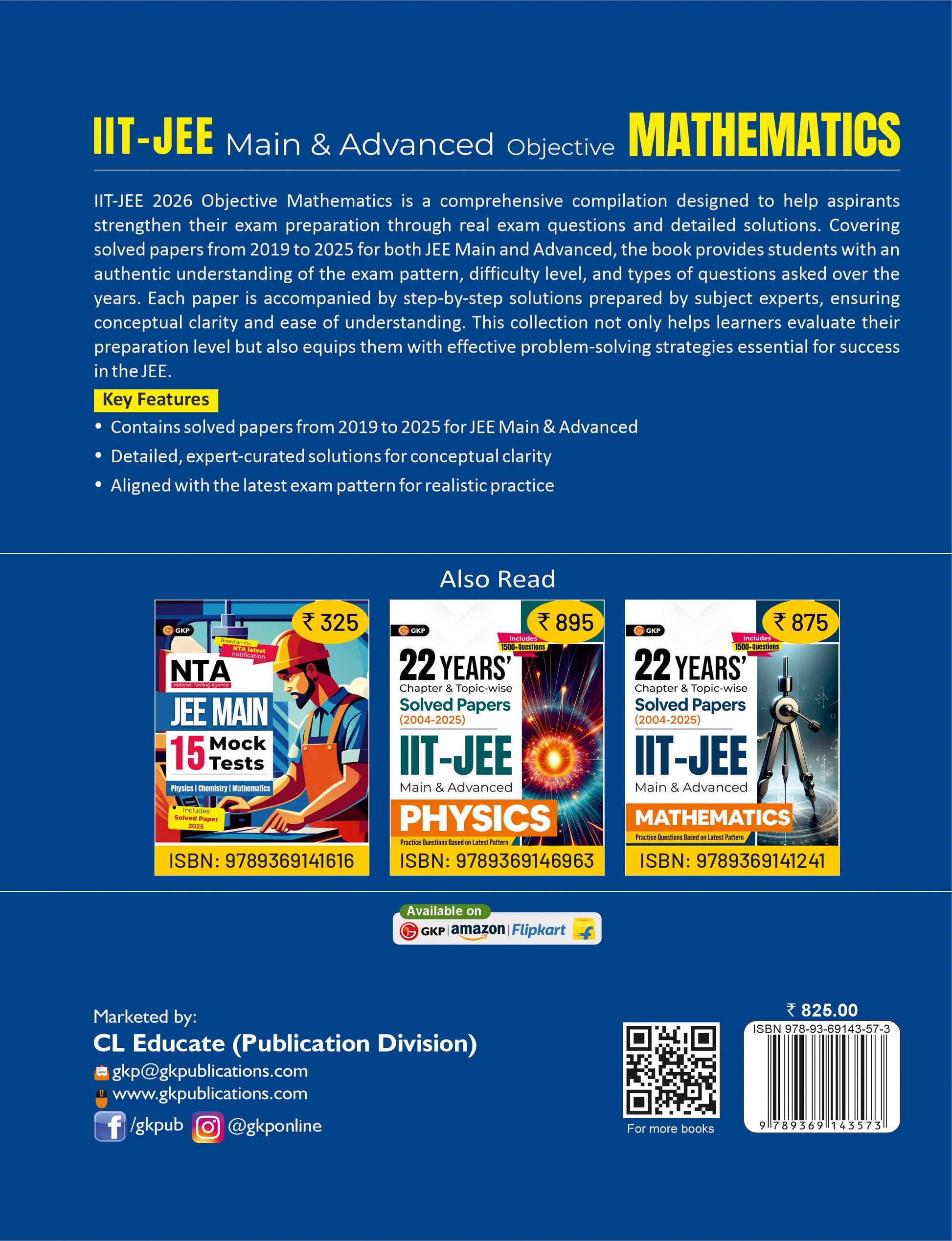 IIT-JEE 2026- Objective Mathematics is a comprehensive compilation designed to help aspirants strengthen their exam preparation through real exam questions and detailed solutions. Covering solved papers from 2019 to 2025 for both JEE Main and Advanced, the book provides students with an authentic understanding of the exam pattern, difficulty level, and types of questions asked over the years. Each paper is accompanied by step-by-step solutions prepared by subject experts, ensuring conceptual clarity and ease of understanding. This collection not only helps learners evaluate their preparation level but also equips them with effective problem-solving strategies essential for success in the JEE.