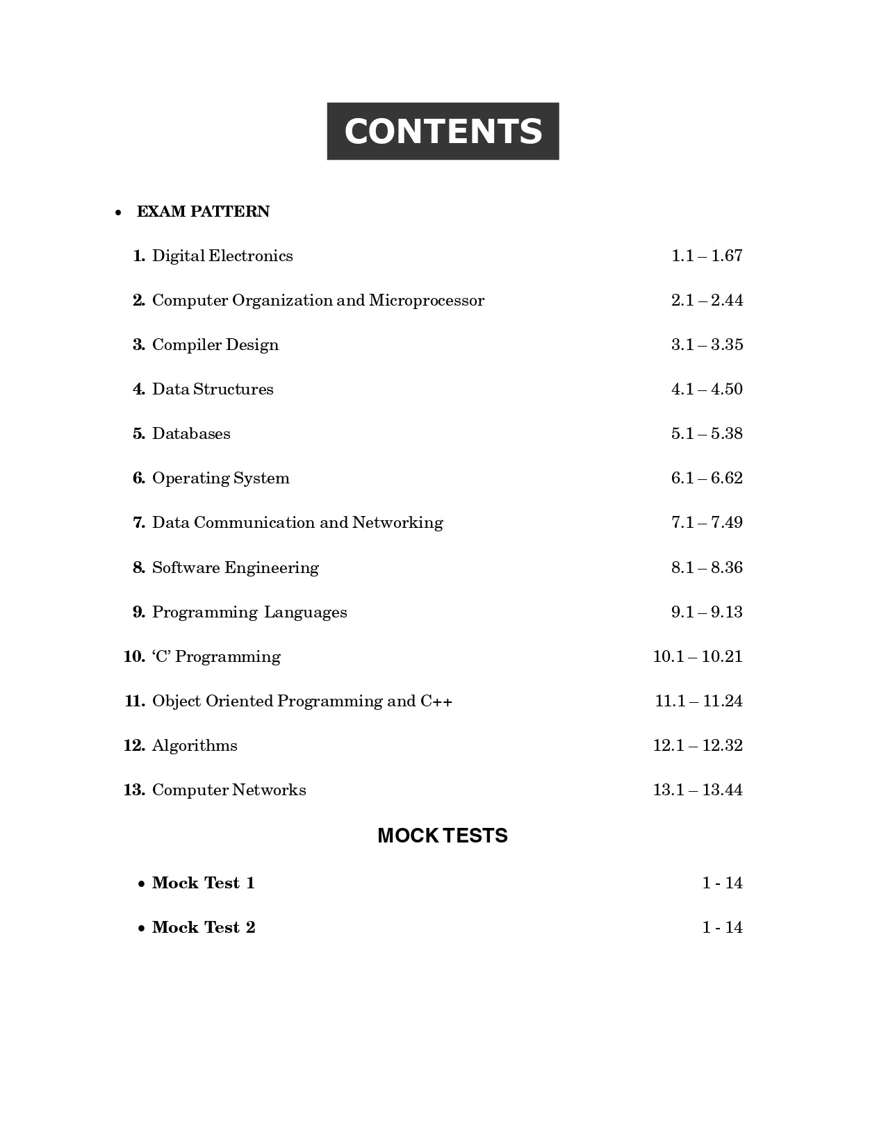 This book offers complete, concept-based coverage of the Technical section syllabus, ensuring thorough preparation in Computer Science & Engineering. It includes clear explanations and targeted practice questions to enhance accuracy and speed. To facilitate self-assessment and improve time management, the guide provides 2 full-length mock tests that simulate the real exam environment, enabling you to approach the exam with confidence.