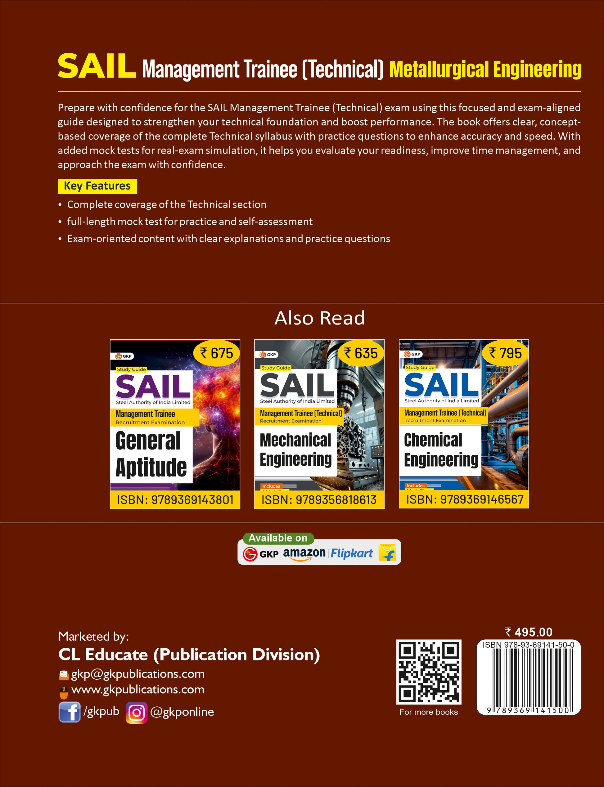 Prepare with confidence for the SAIL Management Trainee (Technical) exam using this focused and exam-aligned guide designed to strengthen your technical foundation and boost performance. The book offers clear, concept-based coverage of the complete Technical syllabus with practice questions to enhance accuracy and speed. With added mock tests for real-exam simulation, it helps you evaluate your readiness, improve time management, and approach the exam with confidence.